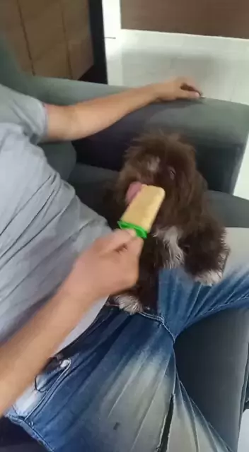 Uma frutinha congelada para amenizar o calor #mundoanimal #pet #Filhote #shitzu #amopet