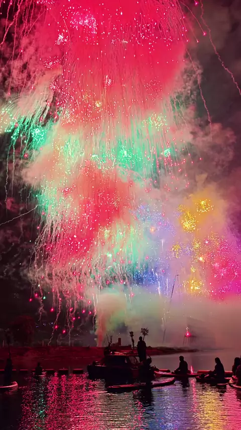 ​It feels like rowing straight into a dream. A single paddleboarder glides through the stillness as a private symphony of fireworks paints the night sky over the water. This is the ultimate intersection of modern outdoor life and the ancient Chinese obsession with the beauty of "Huahuo" (fireworks). You won't believe how quiet the water stays while the sky is screaming in color. Original creator: @桨板烟花–花火户外 #wonderfulchina #fireworks #paddleboarding #aesthetic #nightview #