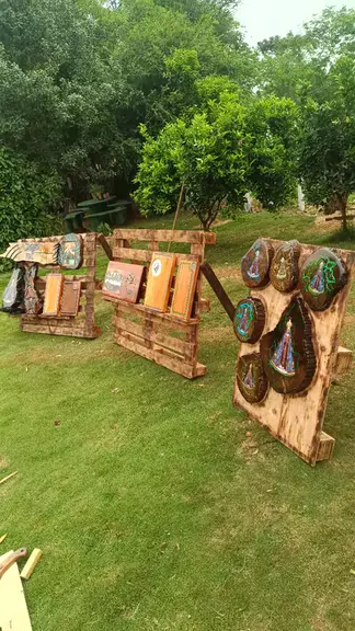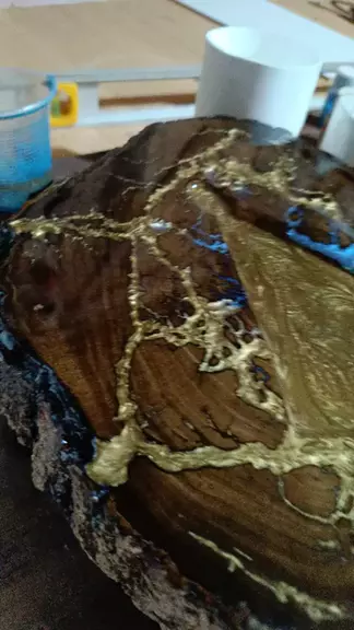 Trabalhos rústicos em madeira com resina.