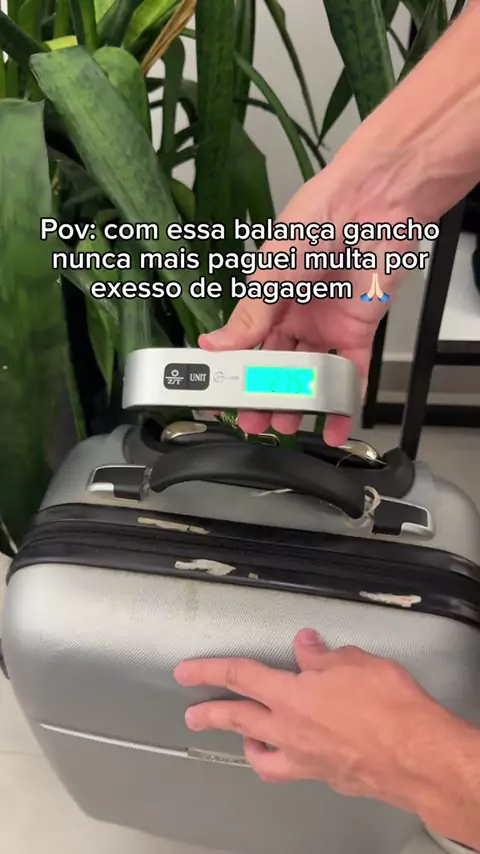 Nunca mais corra o risco de pagar excesso de bagagem come essa balança de mala portátil 🛫🧳 #viagem #maladeviagem #mala #excessodebagagem
