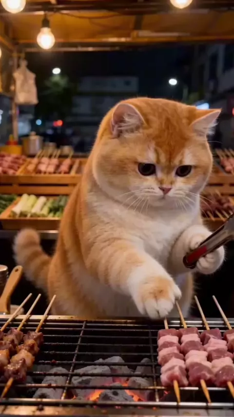 Had a long day, but couldn't walk past this stall... This chef definitely knows what he's doing! 🍢🐱 #catsoftiktok #streetfood #barbeque #fyp #trending