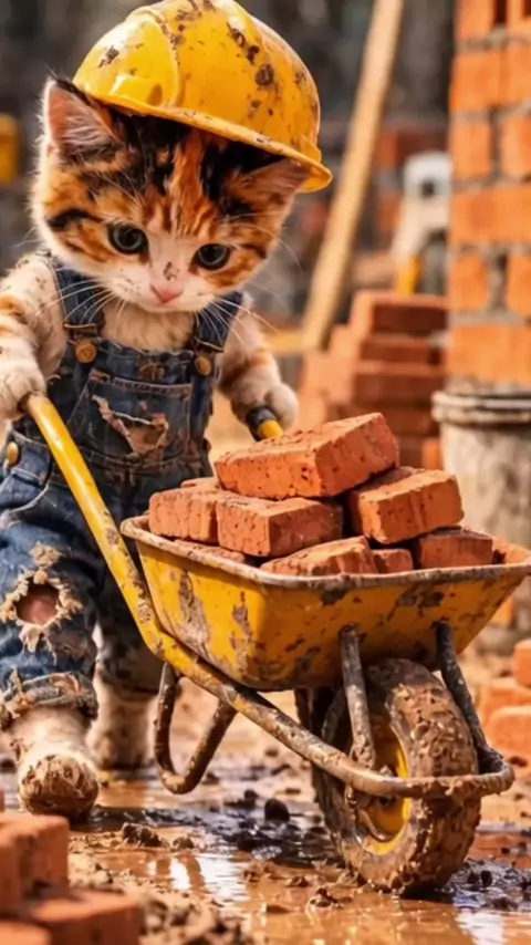 O gatinho trabalhou o dia todo na obra 🐱🧱#gatinho #cat #fofo #shorts #Trabalho
