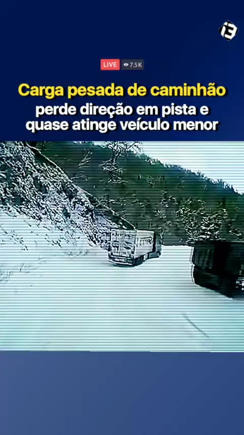Recentemente um vídeo está viralizando na internet onde mostra uma câmera de segurança flagrando momento onde carga se desliza de pista escorregante e quase colide com veículo menor. Data: 22/11/11. Confira as imagens: #noticias #Crime #fy #foryou #viral