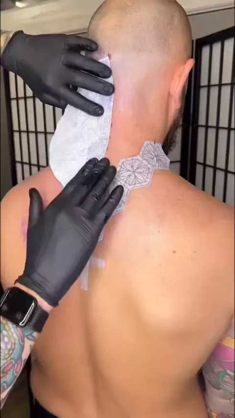 Stencil application Mandala style head neck back tattoo tattoo artist - Coups#tattooartist#mandalaart#mandalatattoo#necktattoo#backtattoo#headtattoo#stippleshading#tattooideas#besttattoos#tattoosforgirls#tattoosforwomen#tattoosformen#tattoolover#tattooinspiration