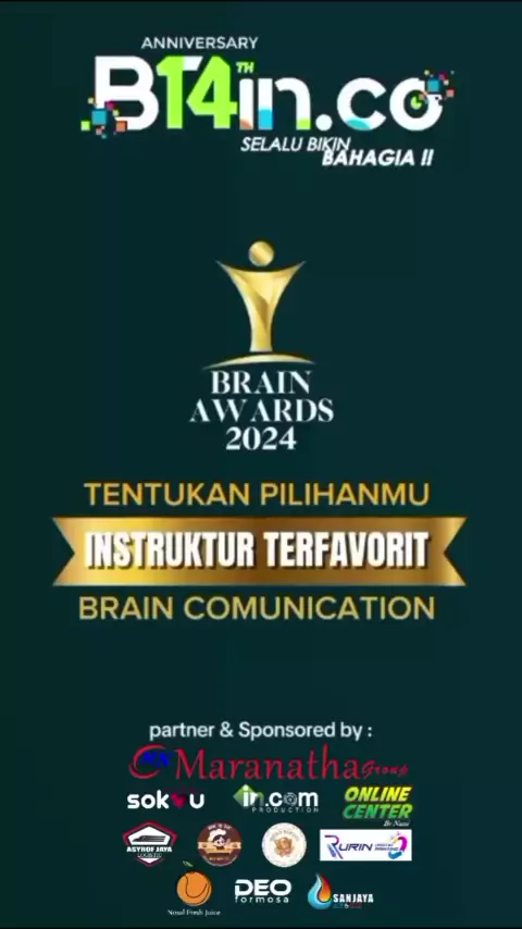 Dukung Nominasi BRAIN AWARDS 2024 Favoritmu. Dan kamu berkesempatan mendapatkan KAOS OFFICIAL dari #braincomunication secara *GRATIS*😃🥳 *CARANYA:* 1. Wajib Follow Semua Akun Medsos Brain Comunication. 2. Pilih Video Nominator Favoritmu 3. Like, Comment, dan Share sebanyak banyaknya Kalian Bisa dukung di Akun Facebook, Instagram, Tiktok, Snack Video & YouTube Brain Comunication Official. *FORMAT KOMEN:* SAYA DUKUNG (NAMA NOMINATOR) spasi #braincomunication