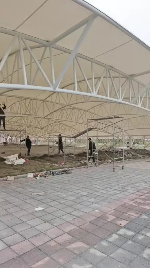 Real shot of the tennis court membrane structure at the construction site is fast, fast, it will be hoisted tomorrow #tensile #tensilestructure #awnings #ArchitecturalAesthetics #carparkingshed