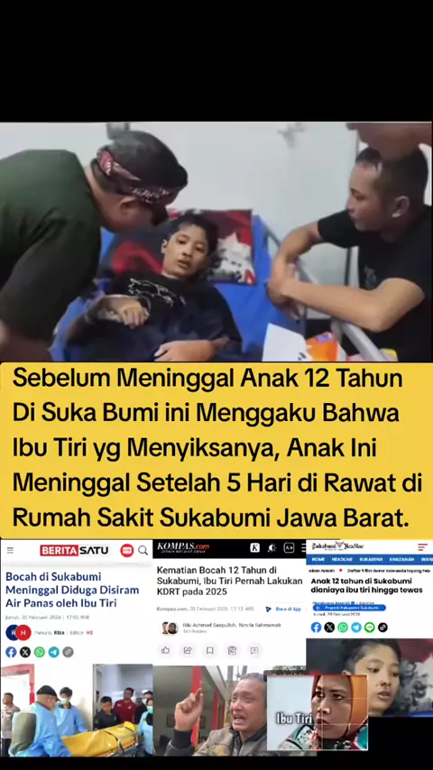 SUKABUMI – Kabar duka menyelimuti Desa Bojongsari, Kecamatan Jampangkulon, Kabupaten Sukabumi. Seorang anak laki-laki berusia 12 tahun yang berstatus sebagai santri dilaporkan meninggal dunia pada Kamis malam (19/02/2026), setelah diduga menjadi korban Kekerasan Dalam Rumah Tangga (KDRT) yang dilakukan oleh ibu tirinya sendiri Sang ibu tiri merasa cemburu kepada sang anak karena bapa kandung nya sangat sayang kepada anak ini Korban sempat dilarikan ke rumah sakit untuk mendapatkan perawatan med...