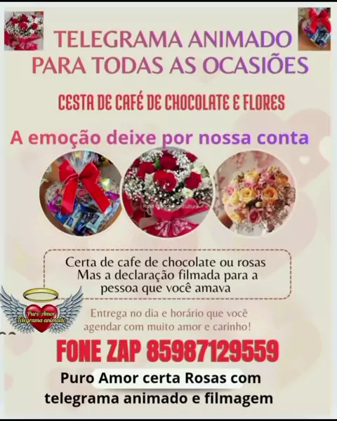 A Puro amor mensagem e cestas agora tem lelegrama animado. Ligue ou chame no zap e conheça um pouco do nosso novo trabalho. 85987129559 A Puro amor tem amor até no nome.