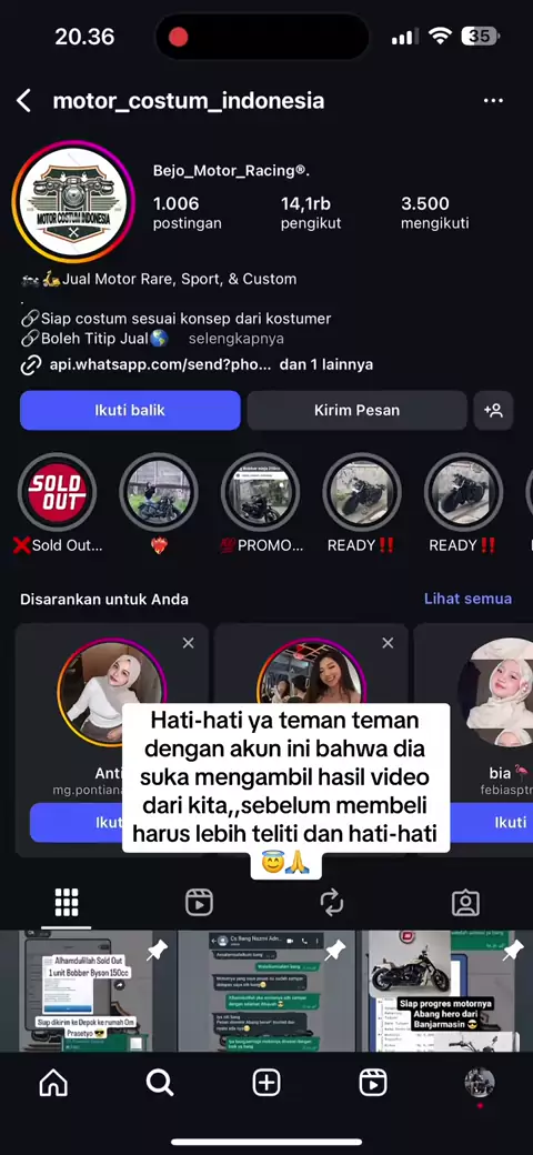 Hati-hati ya teman teman dengan akun ini bahwa dia suka mengambil hasil video dari kita,,sebelum membeli harus lebih teliti dan hati-hati 😇🙏