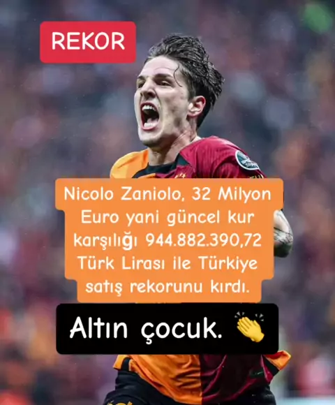 Nicolo Zaniolo, 32 Milyon Euro yani güncel kur karşılığı 944.882.390,72 Türk Lirası ile Türkiye satış rekorunu kırdı.#galatasarayanaliz#okanburuk💛❤#erdentimur#icardiii#musleram_1905#keremaktürkoğlu💛❤️#aşkınolayım#dursunözbek#kazımcankarataş#icardi🇦🇷⚡#simgesağın#sachaboey#zaniolo#galatasarayliyiz#ultraslan#erdentimur💛❤#ultraaslan1905#lucastorreira#victornelsson