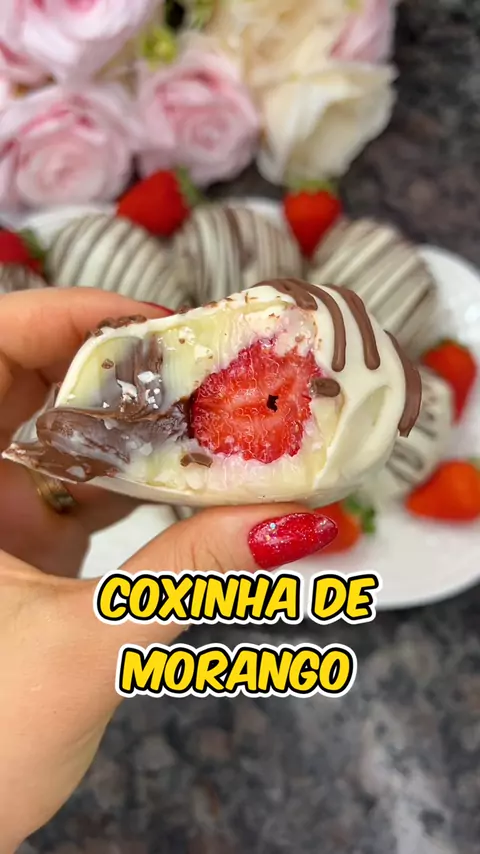 Coxinha de morango com Nutella 🍫😋🍓 1 leite condensado 1 creme de leite 50g de ninho Nutella congelada 400g de cobertura branca para banhar ✨🍫 Gostou do vídeo? Então já aproveita e me segue pra não perder nenhuma receita maravilhosa! 🍰🍫