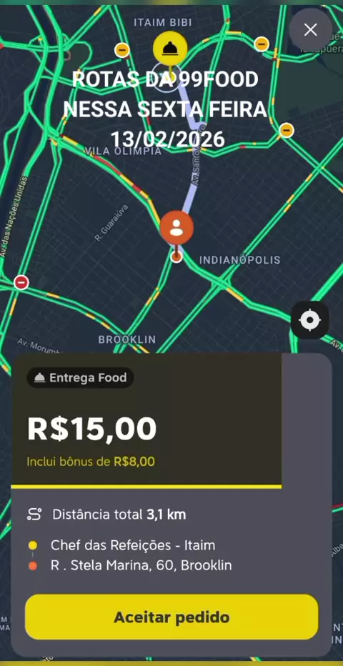 ROTAS DA 99FOOD NESSA SEXTA FEIRA 13/02/2026