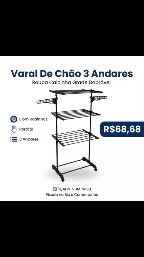 Varal De Chão 3 Andares Roupa Calcinha Grade Dobrável Portátil e Com Rodinhas por R$68,68 Link 🔗 Fixado na Bio e Comentários 🆔🔍AHN-VUM-WQB https://s.shopee.com.br/4fovylnZUH