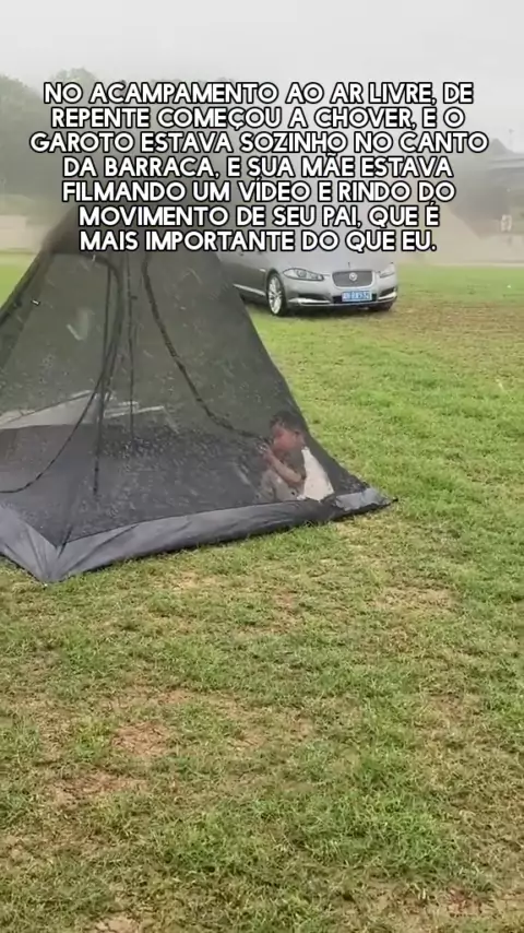 Recentemente, de repente choveu no acampamento ao ar livre de Hunan. A criança estava morando sozinha no canto da tenda.