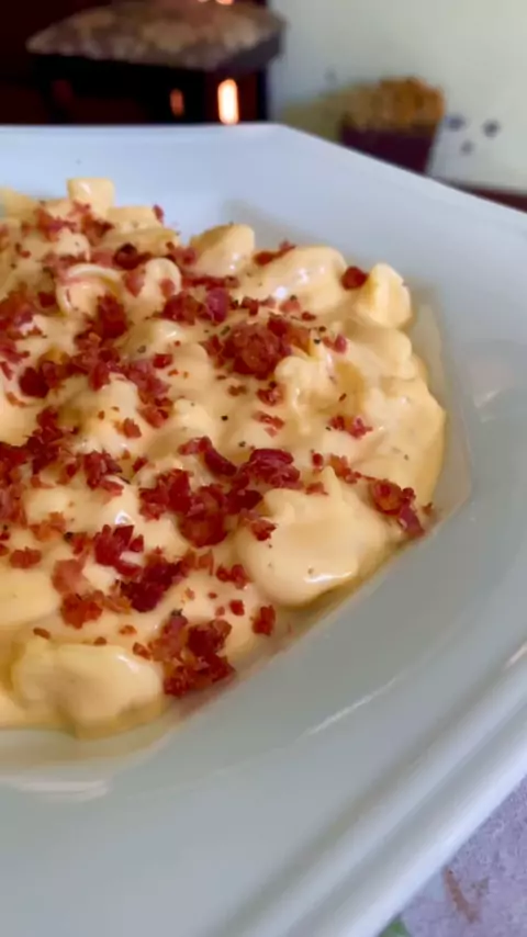 Mac’n’Cheese com farofa de bacon 😋😍 300g de macarrão tipo caracol 1/2 cebola picada 1 colher de manteiga 1 colher de sopa de farinha de trigo 350ml de leite 150g de queijo cheddar Sal e pimenta à gosto 150g de bacon picado #cooking #receitas #macncheese #macandcheese