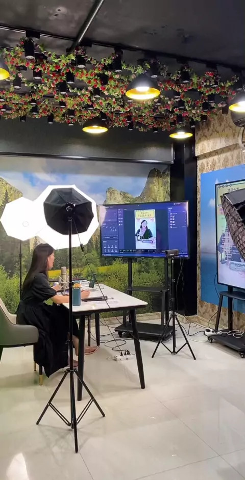 Computador + câmera + tela grande + fundo de tela verde para alcançar a transmissão ao vivo profissional de alta definição, se você quiser ver o efeito da sala ao vivo, siga-me!
