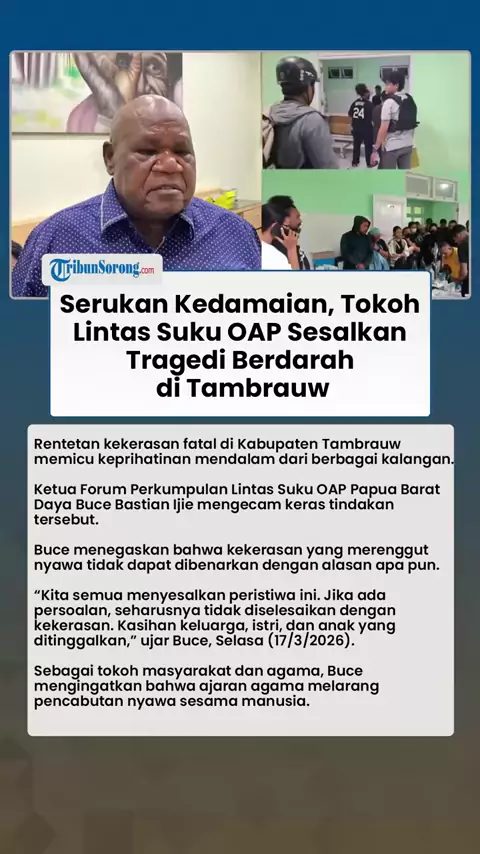 Rentetan kekerasan fatal di Kabupaten Tambrauw memicu keprihatinan mendalam dari berbagai kalangan. Ketua Forum Perkumpulan Lintas Suku OAP Papua Barat Daya Buce Bastian Ijie mengecam keras tindakan tersebut. Buce menegaskan bahwa kekerasan yang merenggut nyawa tidak dapat dibenarkan dengan alasan apa pun. “Kita semua menyesalkan peristiwa ini. Jika ada persoalan, seharusnya tidak diselesaikan dengan kekerasan. Kasihan keluarga, istri, dan anak yang ditinggalkan,” ujar Buce, Selasa (17/3/2026)....