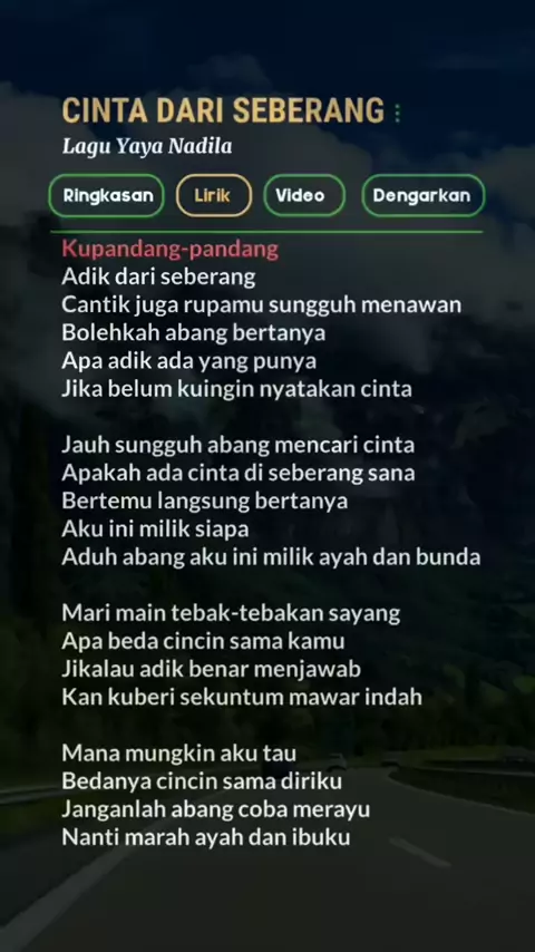 Cinta dari sebrang #lirikvideo #karaoke #liriklaguviral #lirik #liriklagu