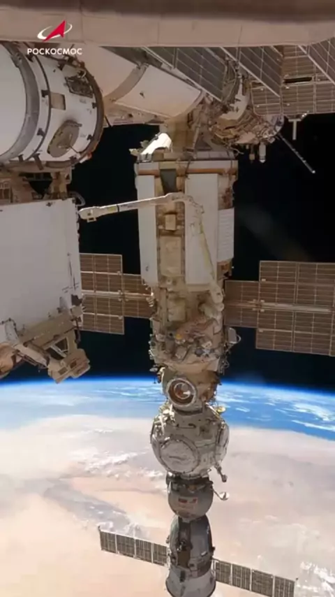 um passeio pelo espaço durante o trabalho dos astronautas #espaço #nasa #estaçãoespacial #espaçonave #mundo