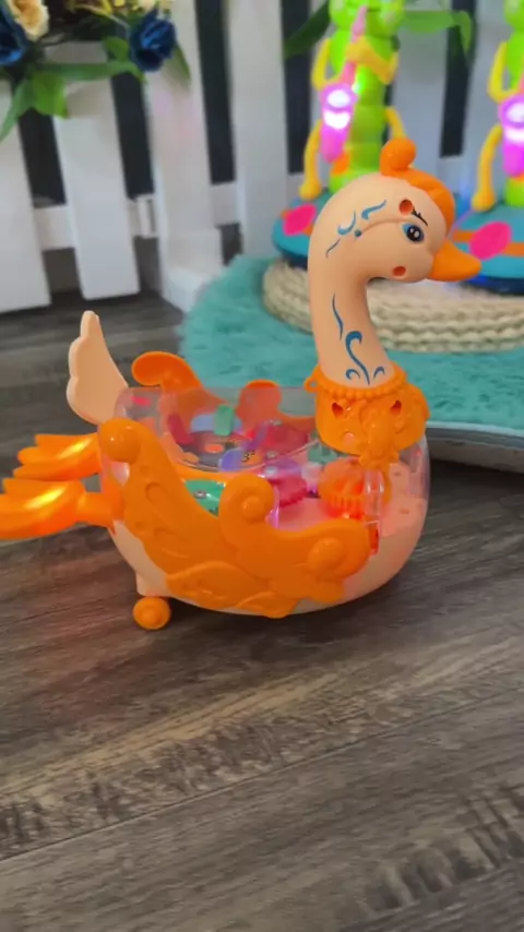 O brinquedo do cisne de engrenagem é demais! Engrenagem transparente, rotação universal, luz e música, os bebês têm que levar quando saem.