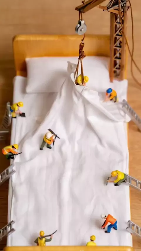 Mini trabalhadores forrando uma cama #MiniTrabalhadores #miniaturamb