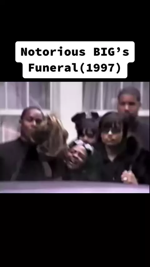 Lil Kim, Mary J Blige e outras celebridades fora do serviço memorial de Biggie Smalls em 1997