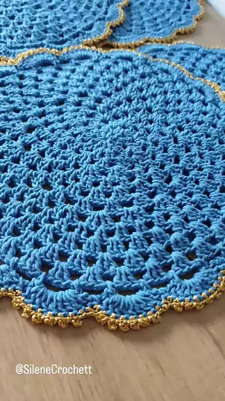 Aquele Jogo de Sousplat que você precisa ter para sua mesa posta. Um modelo clássico com um toque de dourado que faz toda a diferença na peça ✨ #donadecasa #meseirasdobrasil #mesaposta #crochet #kwai