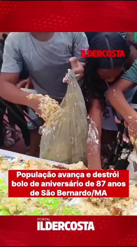 População avança e destrói bolo de aniversário de 87 anos de São Bernardo (MA). Para comemorar o aniversário de 87 anos do município de São Bernardo, a prefeitura encomendou um bolo quilométrico para ser distribuído. No entanto, o que era para ser uma distribuição organizada acabou se tornando uma verdadeira guerra de bolo. A população invadiu o local e começou a retirar o bolo de todas as formas possíveis. VEJA! #aniversário #bolo #festa