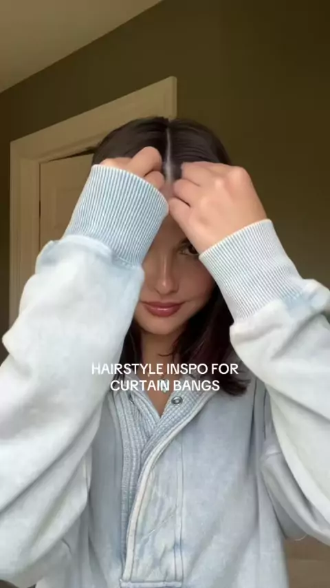 Quick & easy hairstyle inspo for curtain bangs 💙#curtainbangs#hairstyleinspo#hairtok#hairtutorial#fauxfrenchbraid#halfuphalfdown#shorthair#mediumlengthhair