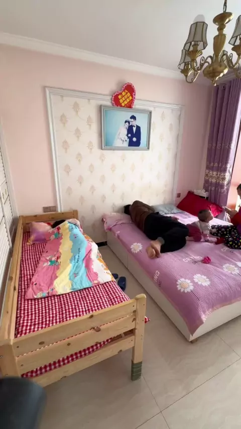 Venha ver como uma família de segundo filho dorme. A cama de emenda é usada separadamente. O efeito é melhor do que costurar. Você não precisa se preocupar em não dormir bem. # bed # stitching bed # stitching bed # big person stitching bed # Zhengding stitching bed factory store