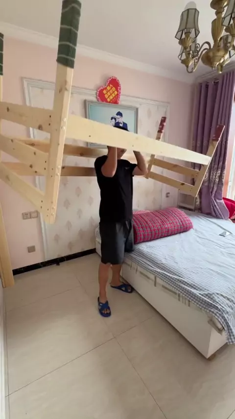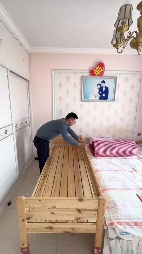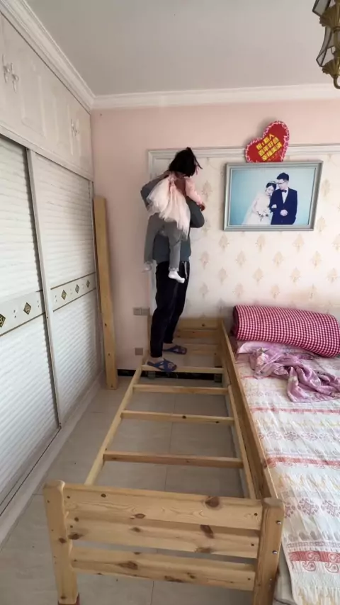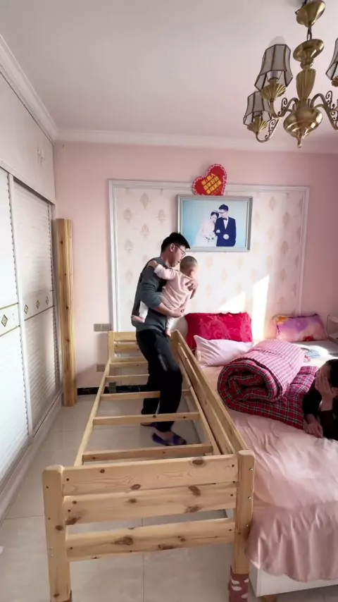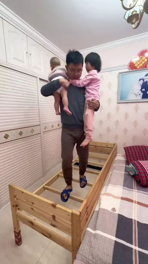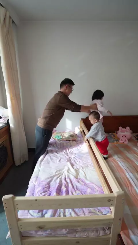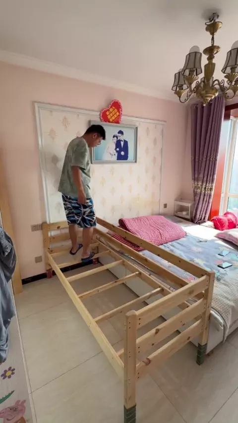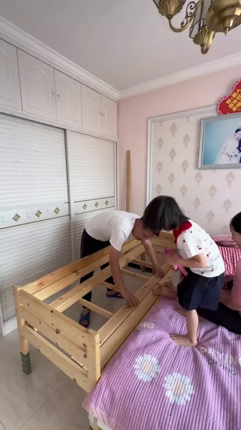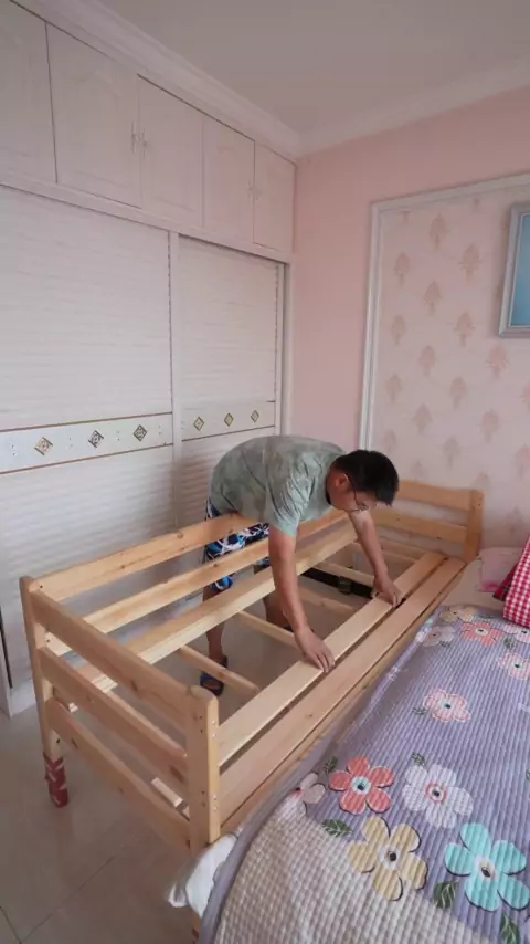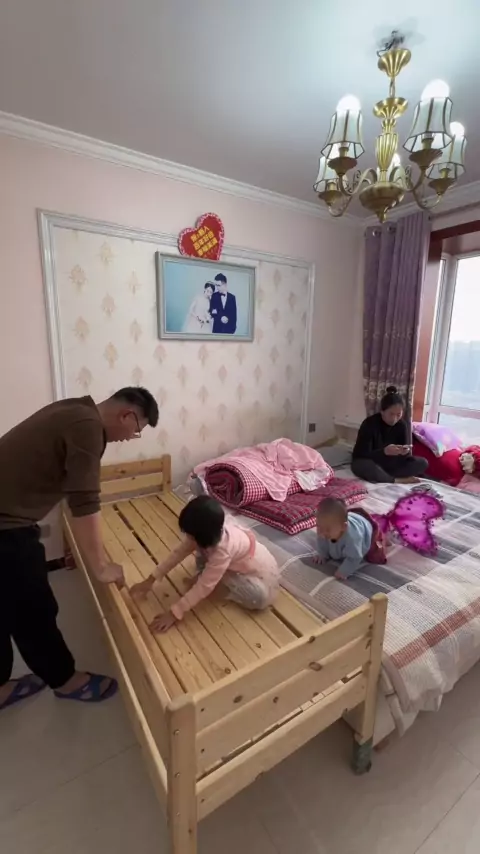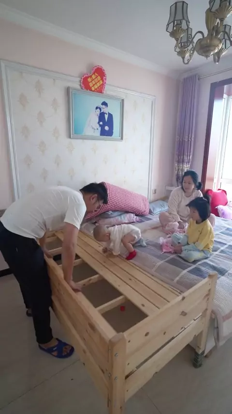 Há um segundo filho em casa. Você não consegue dormir. Como você dorme? # cama # cama de mosaico de madeira maciça # cama de mosaico de criança # cama de mosaico de pessoa grande # cama lateral