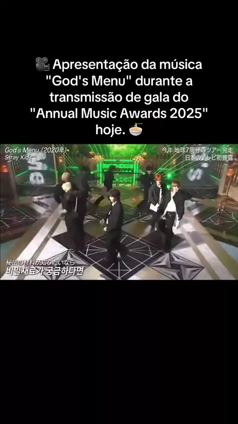 29/12/25 🎥 | "Prêmios Anuais de Música 2025"🏆⚡️ Apresentação @Stray_Kids da música "God's Menu" durante a transmissão de gala do "Annual Music Awards 2025" hoje. 🍜 #StrayKids #スキズ #스트레이키즈 #AMA #skz