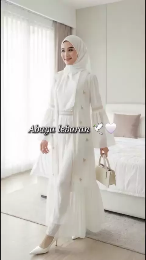 Abaya untuk outfit lebaran, dengan desain yang cantik, elegant dan anggun 🥰🤍 #outfitlebaran #abaya #abayastyle #bajulebaran #pakaianwanita