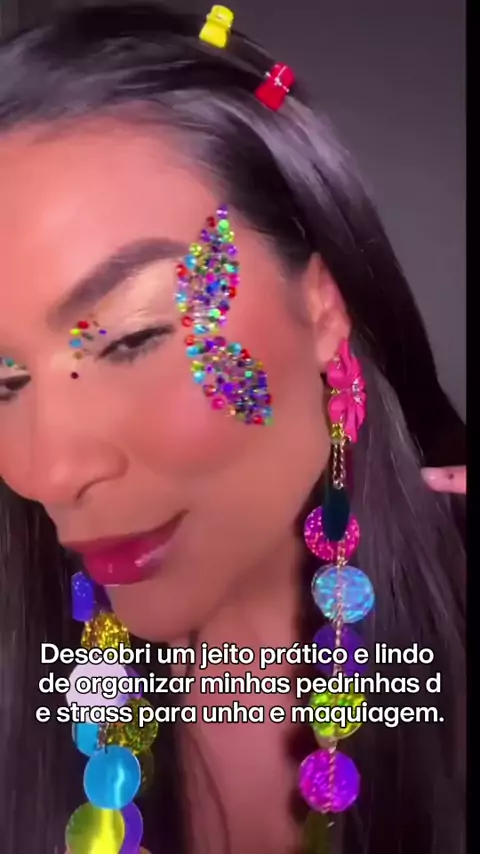 Organize seus strass com estilo e praticidade! #OrganizaçãoDeBeleza #StrassColoridos #NailArt #MaquiagemCriativa #DetalhesQueEncantam