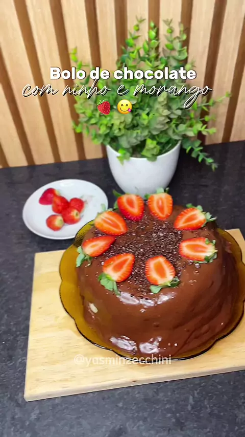 bolo de chocolate com ninho e morango 🍓 😋 #bolo #bolodechocolate #bolodeninho #doce #Receita