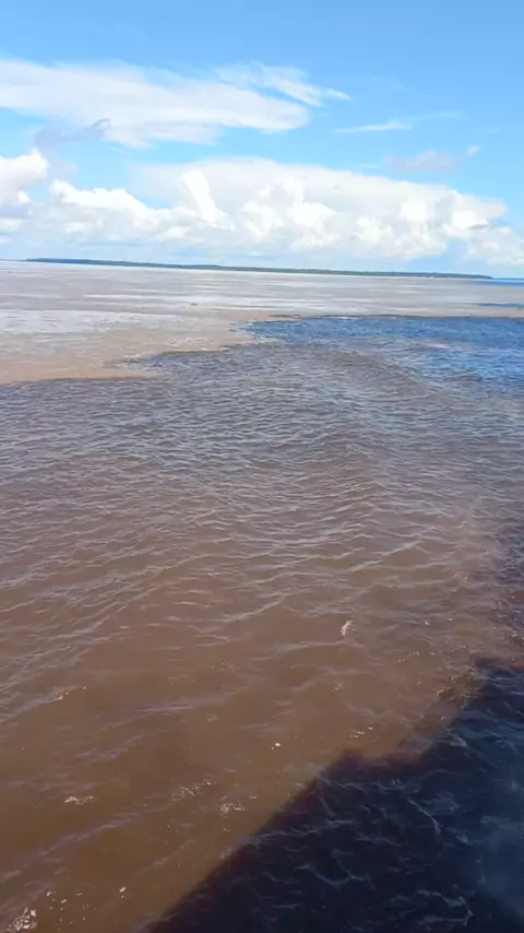 Rio Negro vai ficando pra trás e o Rio Solimões vai assumindo a paisagem. #encontrodasaguas #rionegro #riosolimoes #amazonas #Amazônia
