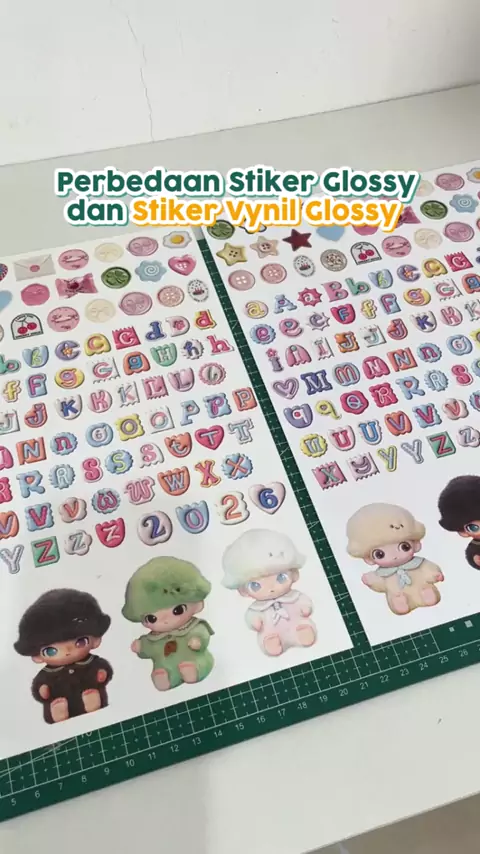 Glossy atau Vinyl Glossy?? 🤔 Semua punya keunggulan masing-masing! 🤩 Kertas stikernya aku taruh di link bio atau cek keranjang kuning! 🛒✨ ‘ ‘ #stikerglossy #stikervinyl #xantri #stikerlucu #desain