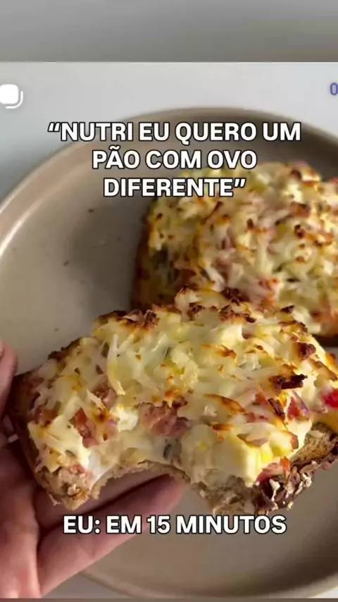 Receita 👇 (Pão com ovo diferente) 🥖 Ingredientes: • 2 ovos cozidos • 1/2 tomate picado • 1/4 de cebola roxa picada • 20g de requeijão light • 10g de queijo light (usei coalho) • 2 fatias de pão de forma (ou pão carioca) • sal e orégano (a gosto) 🍳 Modo de preparo: • Junte os ovos cozidos picados, tomate, cebola e requeijão e misture bem. Acrescente sal e orégano. • Coloque o patê em cima das fatias de pão e acrescente o queijo ralado por cima. • Leve a Air fryer por 5 min a 180°C.