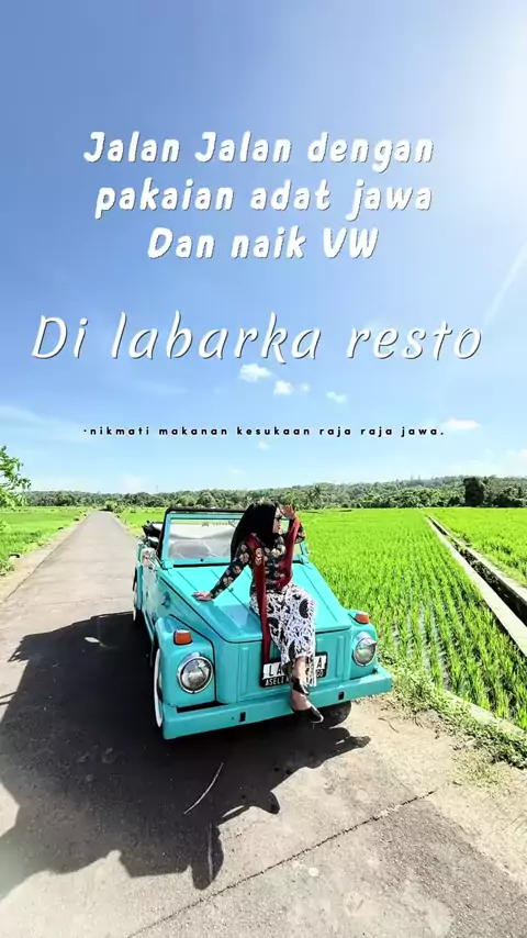 Jalan jalan dengan pakaian adat jawa sambil naik VW Di LABARKA RESTO, di jamin jalan jalanku bakal beda dari yang lain @labarkaresort @la.barka#Labarkaresto#labarka#beranda##yogyakarta