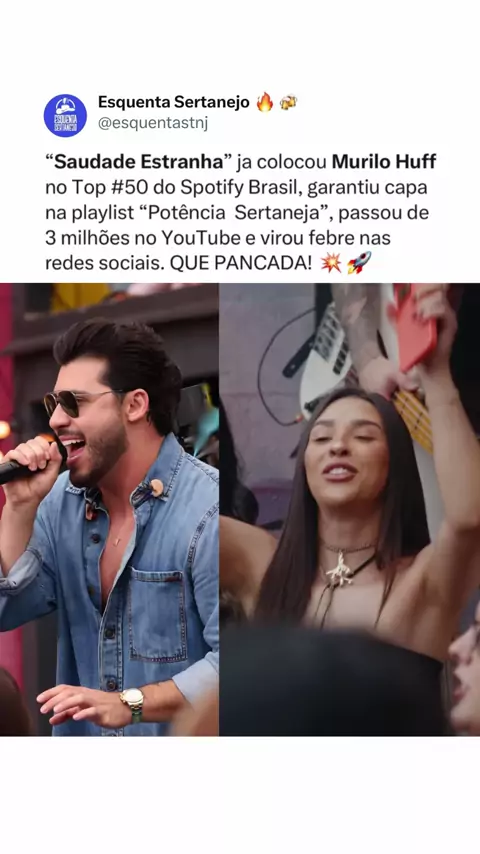 EXPLODIU! Nova música de Murilo Huff viraliza nas redes e coloca “Saudade Estranha” entre as mais ouvidas do país. Tem que respeitar! Gostaram? 🔥