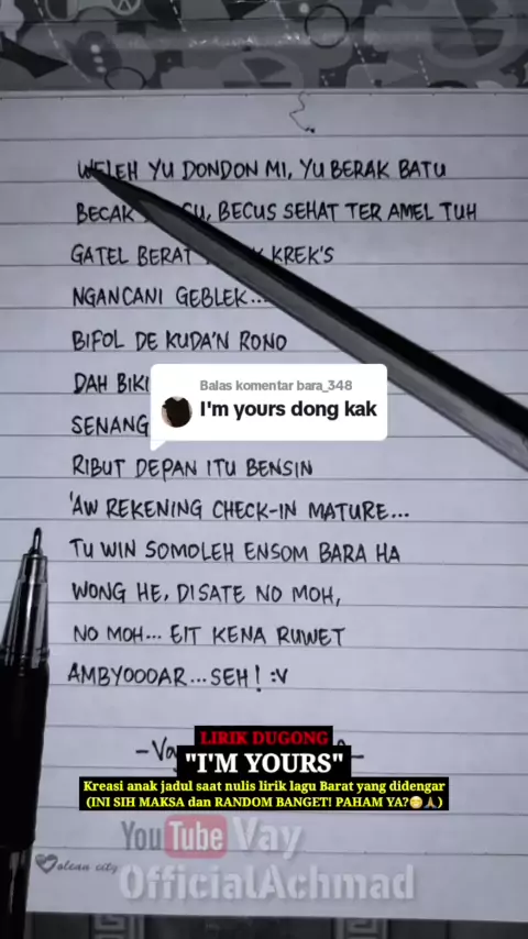 Membalas @bara_348 Lirik Dugong Jason Mraz - I'm Yours | Yang Ku Dengar #lirikparodi #lirikdugong #liriklagu #gaknyambung #gakmasuk #random #maksa #joinlive #jasonmraz #imyours #jasonmrazimyours #lyrics