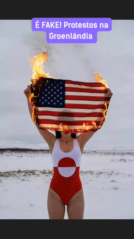 É FAKE que manifestante tenha ateado fogo a bandeira americana na Groenlândia em resposta às ameaças de Donald Trump. #noticias #trump #groenlandia