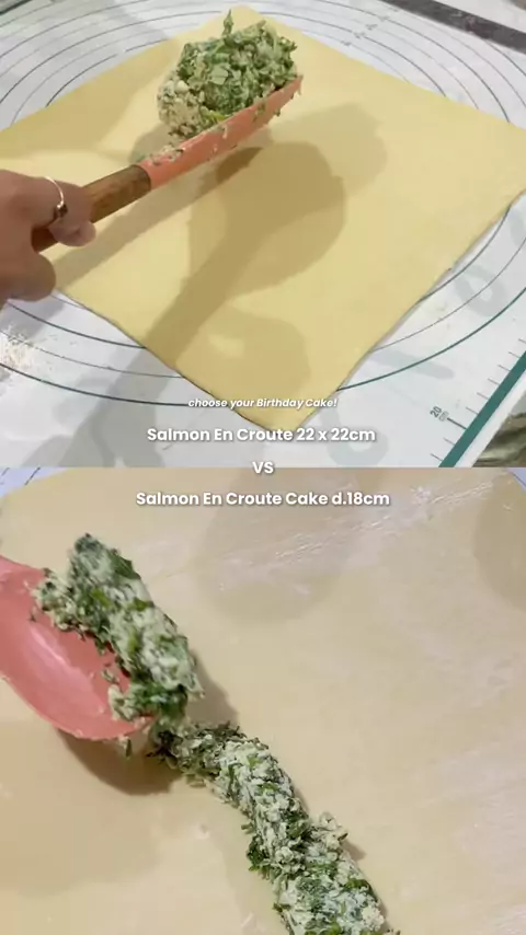 kalau kalian pilih yang mana nih? Tag temen/keluarga/orang yang mau kalian kodein siapa tau beneran dikasih Salmon En Croute Cake👀😆 #salmonencroute #salmonwellington #salmon #pastry ゚