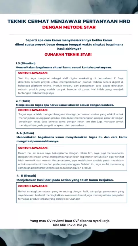 Bingung jawab pertanyaan HRD? Ini dia tips menjawab dengan metode Star #cocareer #cocareertips #tipskerja #