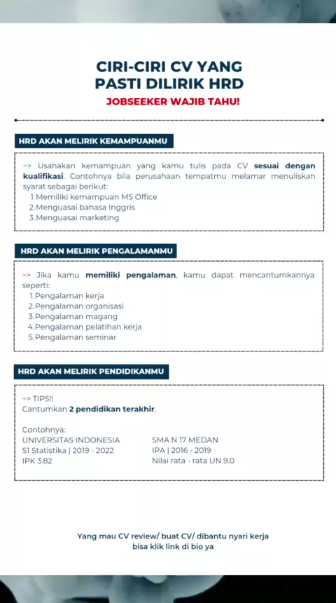 Guysss ini diaaa contoh cv yang bakal dilirik HRD! #cocareer #cocareertips #tipskerja #cv #tipsmelamarkerja #tipshrd #tipscv #loker