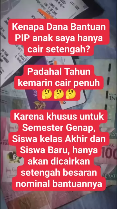 Pada Semester Genap, siswa baru dan siswa kelas akhir, besaran nominal dana bantuan PIP yang diterima siswa hanya setengahnya. #BantuanPIP2024Cair #CeksaldobantuanPIPHariIni #infobantuanpipcairbulanini #BantuanPIPAnakSekolahCair #BantuanPIPTahun2024