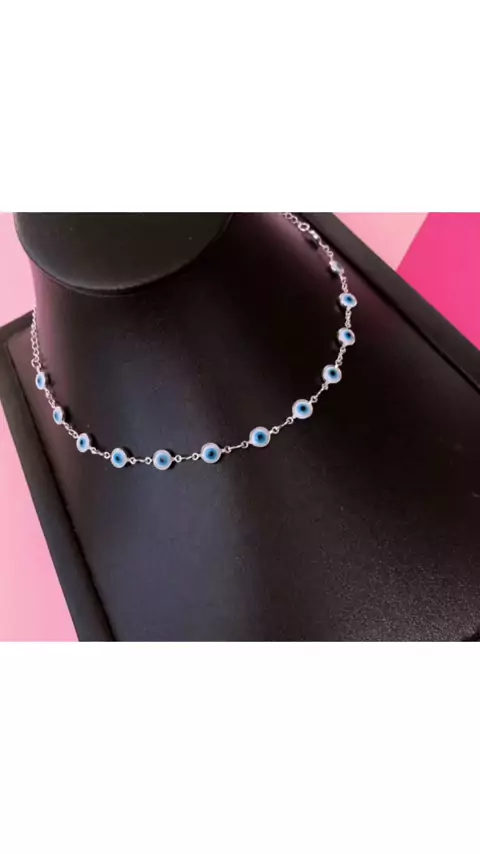 Gargantilha Choker Olho Grego Proteção A Prata 925