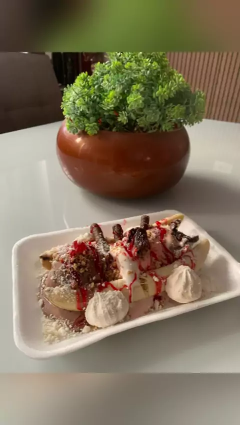 Uma banana split é uma sobremesa clássica que consiste em uma banana cortada ao meio, colocada em uma taça de sobremesa ou em uma travessa comprida. Em seguida, são adicionados três bolas de sorvete de diferentes sabores, normalmente baunilha, morango e chocolate, colocadas ao longo da banana. Em cima do sorvete são adicionadas coberturas, como calda de chocolate, calda de morango. A banana split é uma sobremesa deliciosa e refrescante. 🩷💛