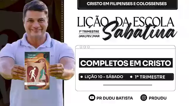 *📖 Lição da Escola Sabatina ADULTOS , Sábado 28/02/2026 "Completos em Cristo" com Pr Dudu.* #EuEstudoALicao #EscolaSabatina https://youtu.be/QoJzeGK0yBA?si=6i8AAm4kQ-28EdSf