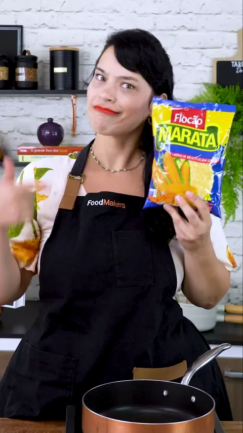 INGREDIENTES: - 1 xic de flocão de milho - 2 xic de leite - 1 caixa de leite condensado (395g) - 60g de chocolate branco - 1 col.sopa de manteiga Para rechear (opcional): - Goiabada em pedaços - Queijo (pode ser queijo minas ou queijo coalho) Para finalizar: - Açúcar cristal - Açúcar com canela - Coco ralado MODO DE FAZER: Em uma panela, coloque o flocão direto no leite e cozinhe em fogo baixo, mexendo sempre, até formar uma textura cremosa parecida com angu. Para deixar a massa bem lisinha, tra